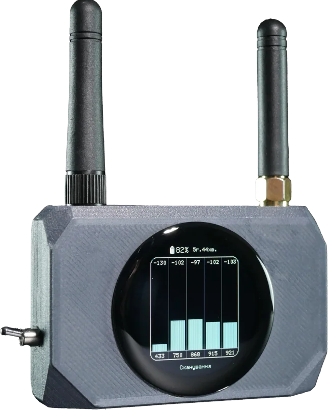 Повний контроль повітряного простору. Наш пристрій забезпечує виявлення дронів на всіх сучасних частотах, від стандартних до спеціалізованих.