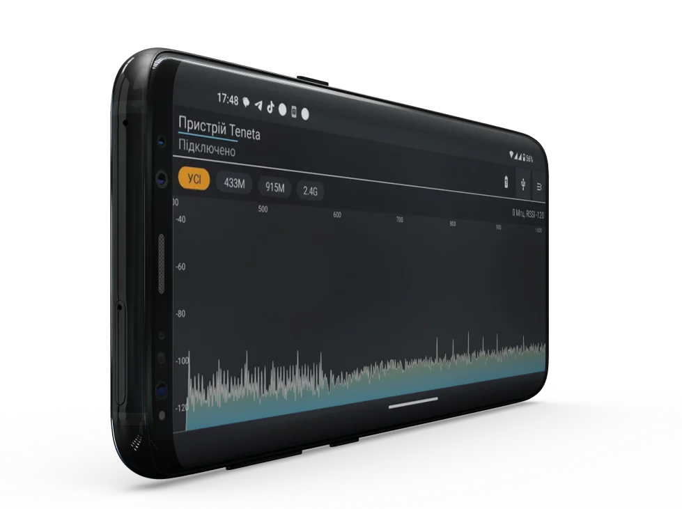 Призначений для завчасного виявлення FPV дронів (на системі зв’язку ELRS) та DJI Mavic (тільки через ПЗ “Teneta”). При підключенні до телефону/планшету на системі Android працює як спектрометр, тому також відображає та виявляє на яких частотах працює РЕБ та інші пристрої. Для тестування дектора дронів "Тенета" разом із РЕБ відстань повинна становити не менше 5 метрів!