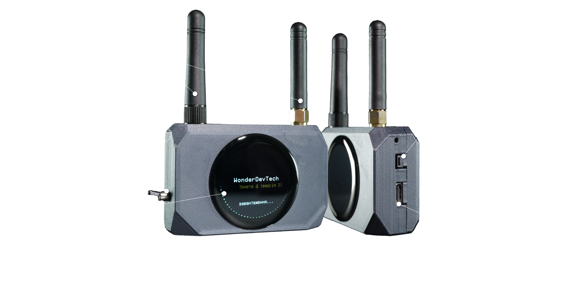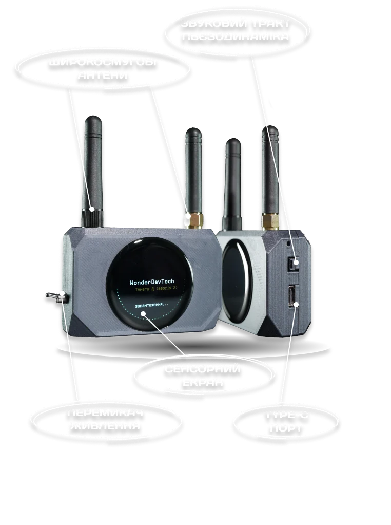 Виявляє "Тенета" з трьома антенами, тільки через застосунок