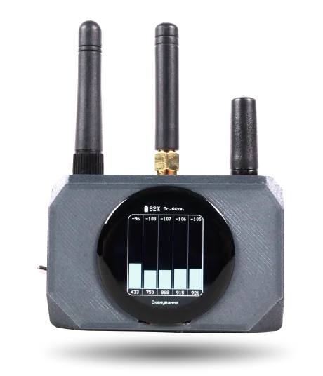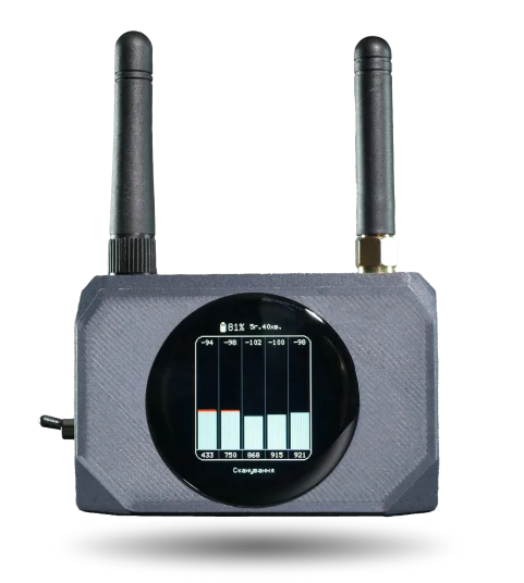 Виявляє не тільки дрони, але й моніторить всі радіочастоти, включаючи сигнали станцій РЕБ. Пам’ятайте: для безпечної роботи дотримуйтесь дистанції 5 метрів.